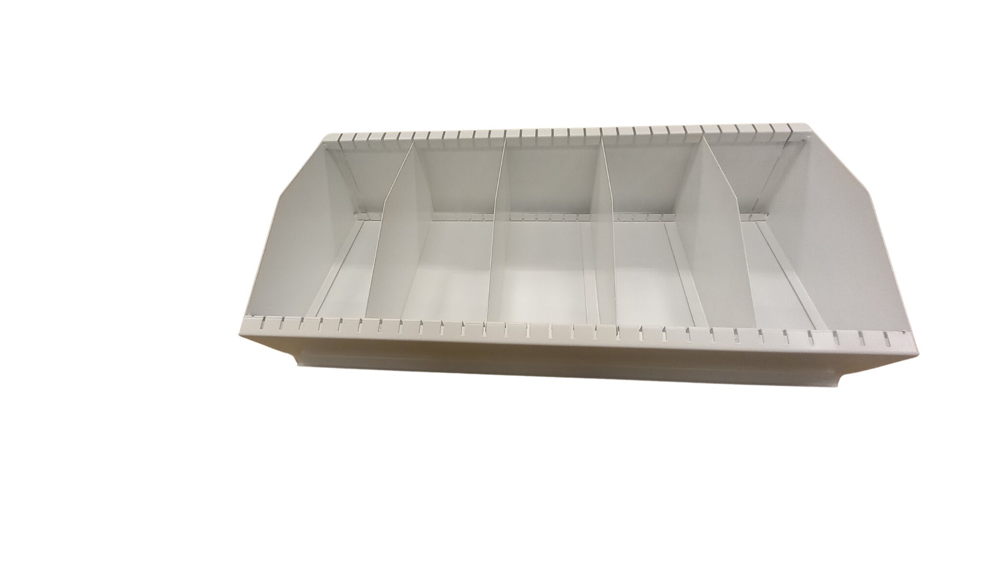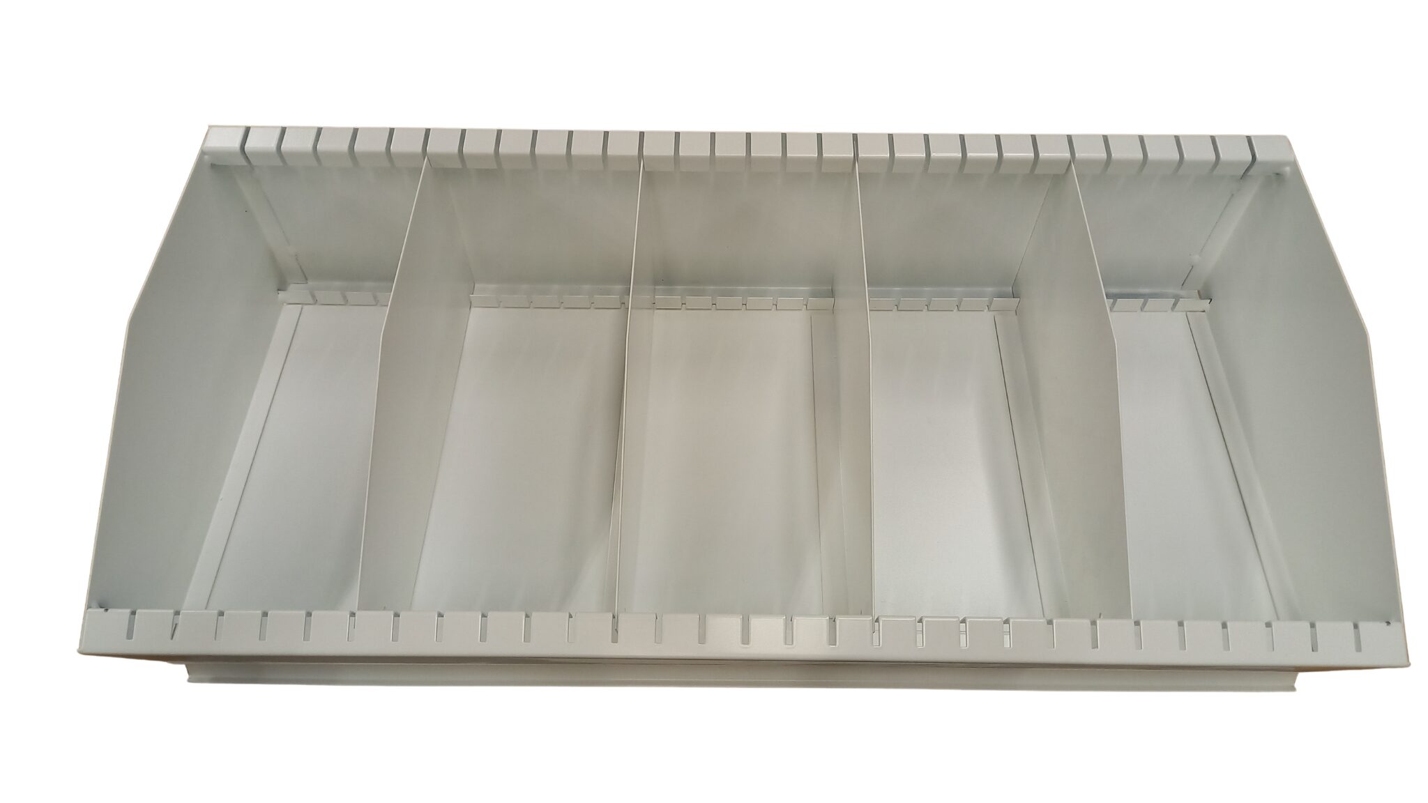 Le bac soldeur métallique est idéal pour la présentation en vrac de petits produits. Robuste et durable, il se positionne sur les tablettes des gondoles murales et centrales.